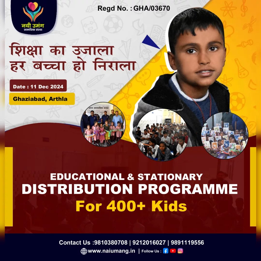 नयी उमंग सामाजिक संस्था द्वारा स्कूल में 400 से अधिक शैक्षिक किटों का वितरण किया, ताकि बच्चों को शिक्षा की दिशा में और बेहतर अवसर मिल सकें। हम यह सुनिश्चित करने के लिए लगातार काम कर रहे हैं कि हर बच्चे को अपनी पूरी क्षमता तक पहुँचने का मौका मिले। शिक्षा से ही हम समाज में सकारात्मक बदलाव ला सकते हैं।